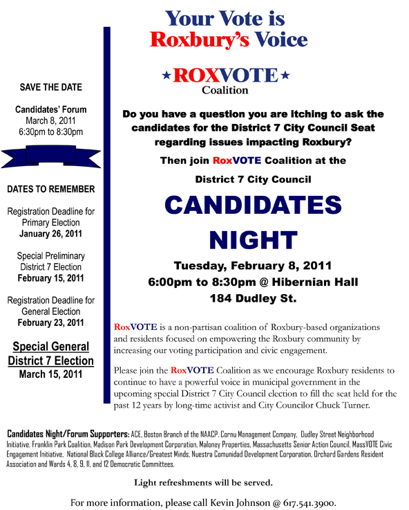 Candidates Night at Hibernian Hall (184 Dudley Street)