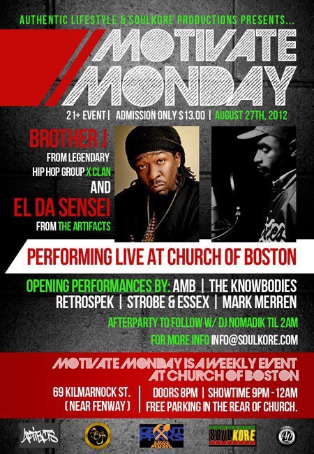 Bro. J of X-Clan in Boston Mon. Aug. 27By Blackstonian / August 22, 2012 Bro. J of X-Clan in Boston Mon. Aug. 27 RSVP on Facebook http://www.facebook.com/events/345400872204291/