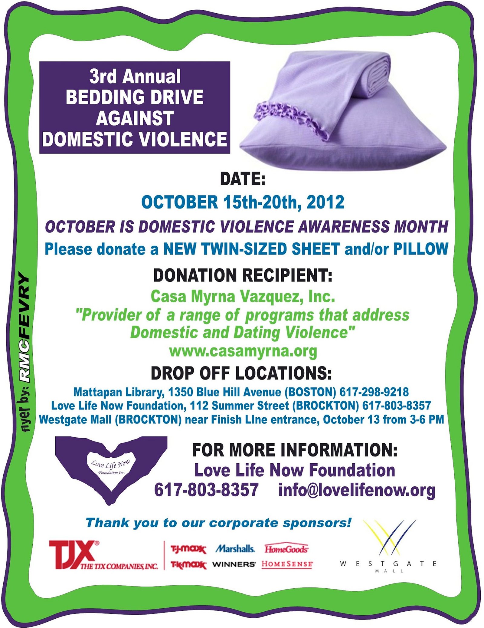 Love Life Now will be at the Mattapan Library on the 20th from 230p-530p for last day of Drive spreading awareness and October 22nd to hand off proceeds to Casa Myrna’s Co-Executive Director.