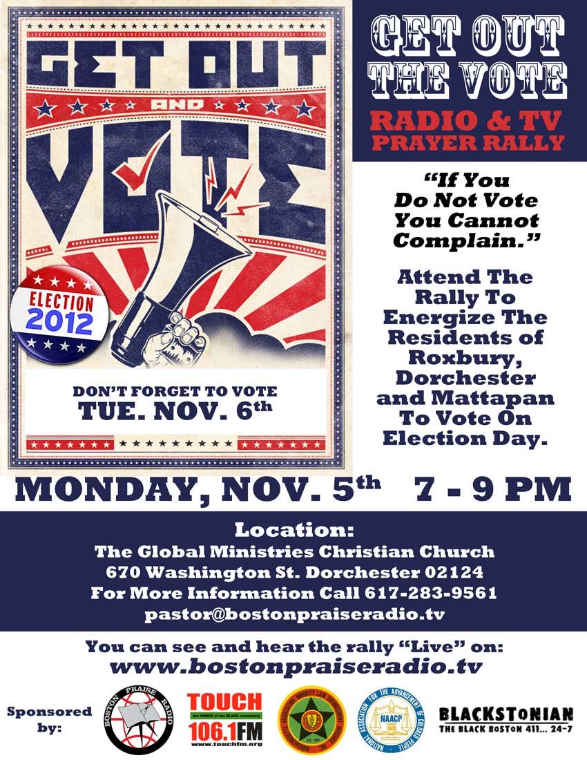 Get Out The Vote RallyBy Blackstonian / November 2, 2012 GET OUT THE VOTE RALLY Monday Nov. 5th 7-9PM