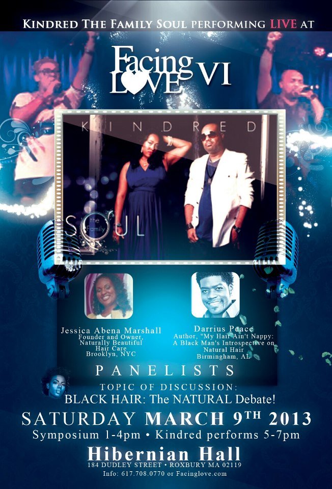 Each of our symposium’s revolve around a central theme. Facing Love VI’s conversation will penetrate how HAIR CARE and IMAGE has contributed to the dysfunction in the Black/Latino community in a discussion dubbed BLACK HAIR: The NATURAL Debate. We have enlisted the assistance of Jessyca Abena Marshall, Owner and Founder of Naturally Beautiful Hair Care, Darrius Peace, Author of “My Hair Ain’t Nappy” and Nancy V Brown of NV Hair Salon to add expertise to that discourse.