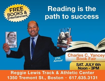 Boston City Hall (July 7, 2013) – The 27th Annual Charles C. Yancey Book Fair distributed approximately 20,000 brand new books to nearly 2,000 Boston readers on July 6, 2012 at the Reggie Lewis Track and Athletic Center in Roxbury, Massachusetts.