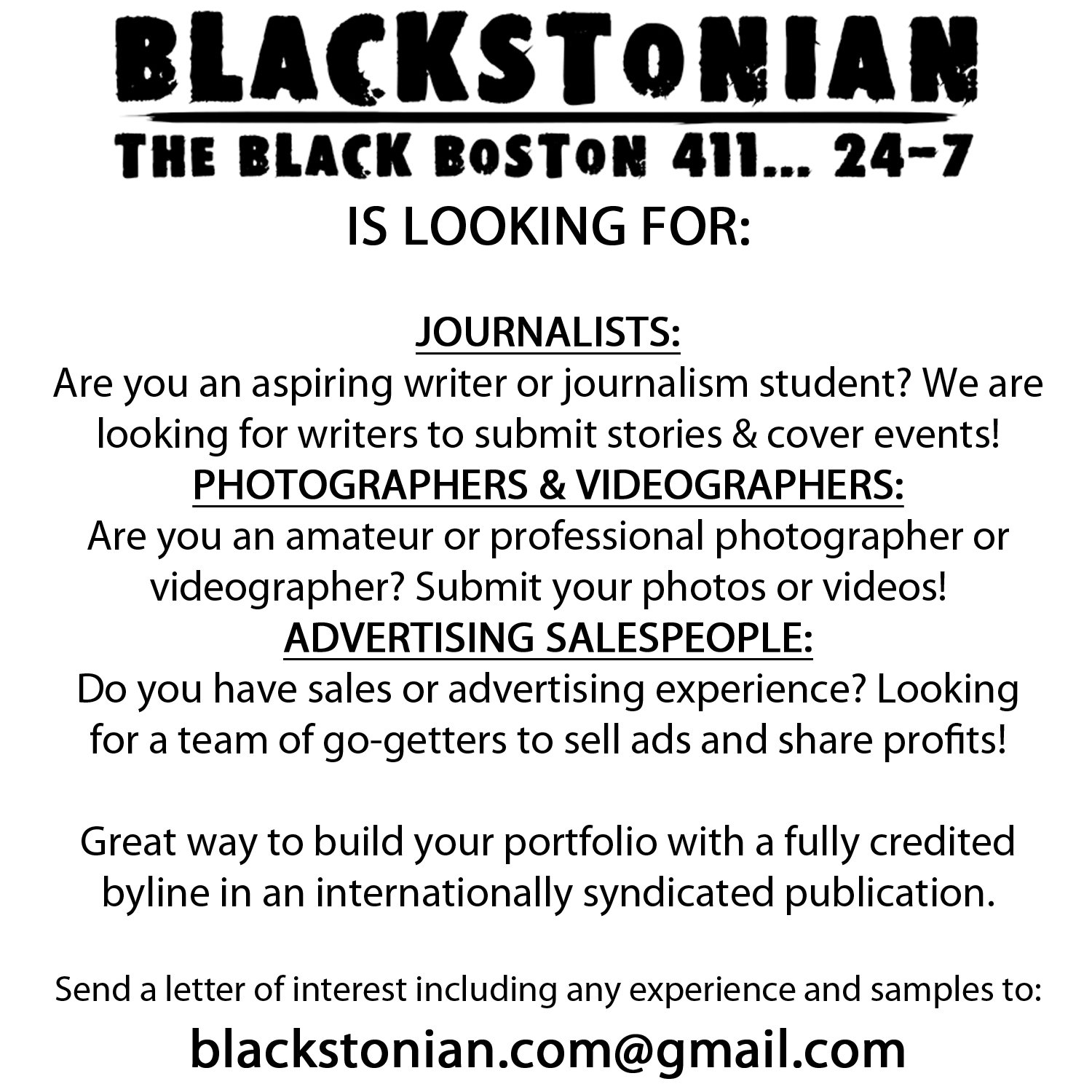 Blackstonian needs writers, photographers, ad salesBy Blackstonian / February 11, 2014 Writers Photogs Ads/Sales Journalists/Writers Photo-Journalists/Photographers & Videographers Ad Salespeople